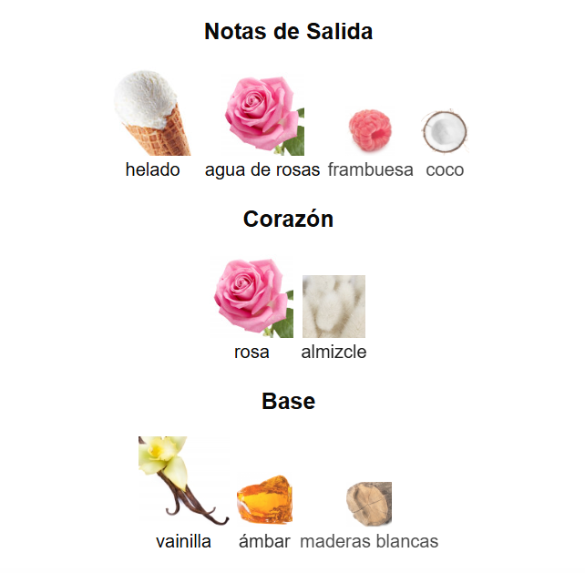 La nota de fondo redondea a la perfección la experiencia de la fragancia y deja una impresión duradera. Aquí, el cálido ámbar, las maderas preciosas y la dulce vainilla se funden en una seductora combinación. La composición de esta fragancia única comienza con notas afrutadas y dulces, se transforma en un corazón floral y almizclado y termina con un cálido fondo amaderado y de vainilla.