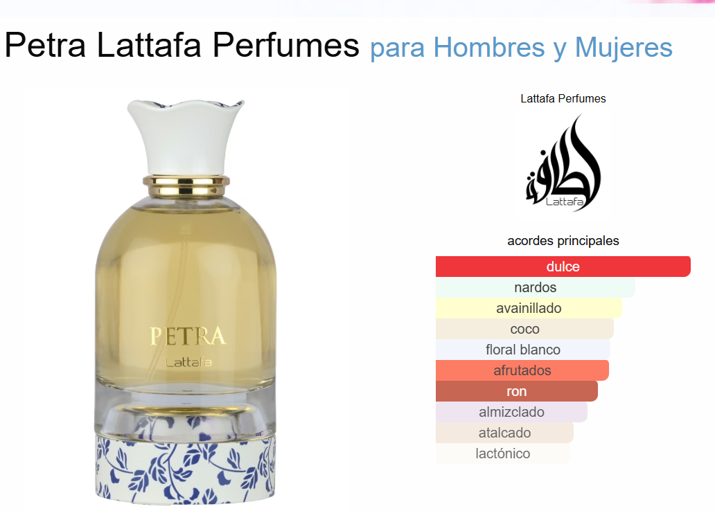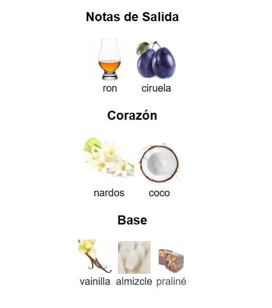 Petra se abre con la dulzura irresistible de la ciruela combinada con la calidez sutil del ron. Un corazón de cremosa tuberosa y coco exótico añade un ambiente sensual y tropical, mientras que la base de praliné, vainilla y suave almizcle ofrece un acabado reconfortante y comestible. Femenina, versátil y deliciosamente dulce sin ser abrumadora.